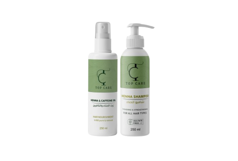 مجموعة الشعر تعتبر مجموعة الحناء المتكاملة المقدمة من متجر العناية بالشعر والجسم Topcare خيار مثالي للعناية بالشعر بشكل طبيعي و تتألف هذه المجموعة من منتجات مبتكرة تحتوي على زيت الحناء النقي الذي يعزز نمو الشعر و ولمعانه بالإضافة إلى ذلك تحتوي المجموعة على الشامبو